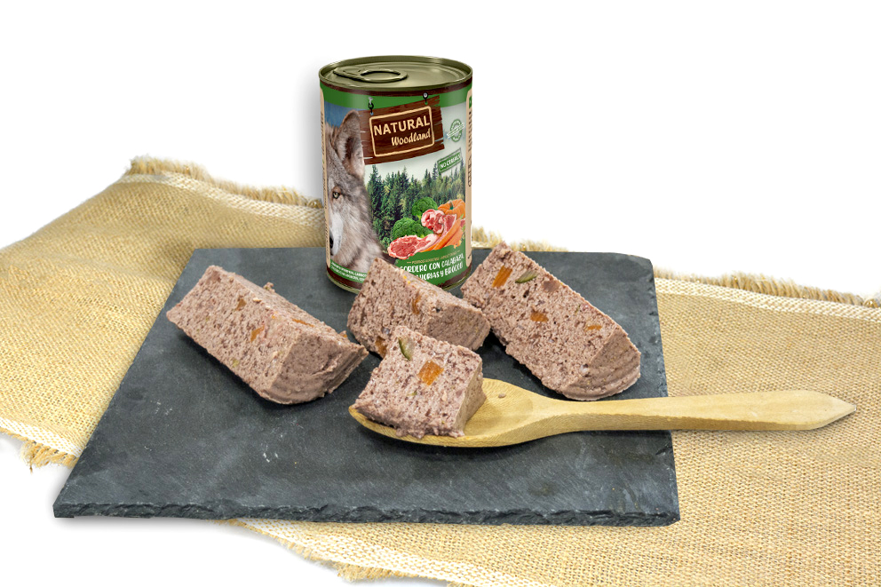 Carne fresca (Cordero 50 %, Pavo y Pollo 10 %), Calabaza (5 %), Zanahorias (5 %), Brócoli (3 %), Aceite y grasas vegetales.