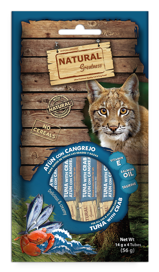 Atún* (26 %), Cangrejo* (4 %), Almidón de tapioca, Extracto de atún, Aceite de salmón (800 mg/kg). Ingredientes naturales*.